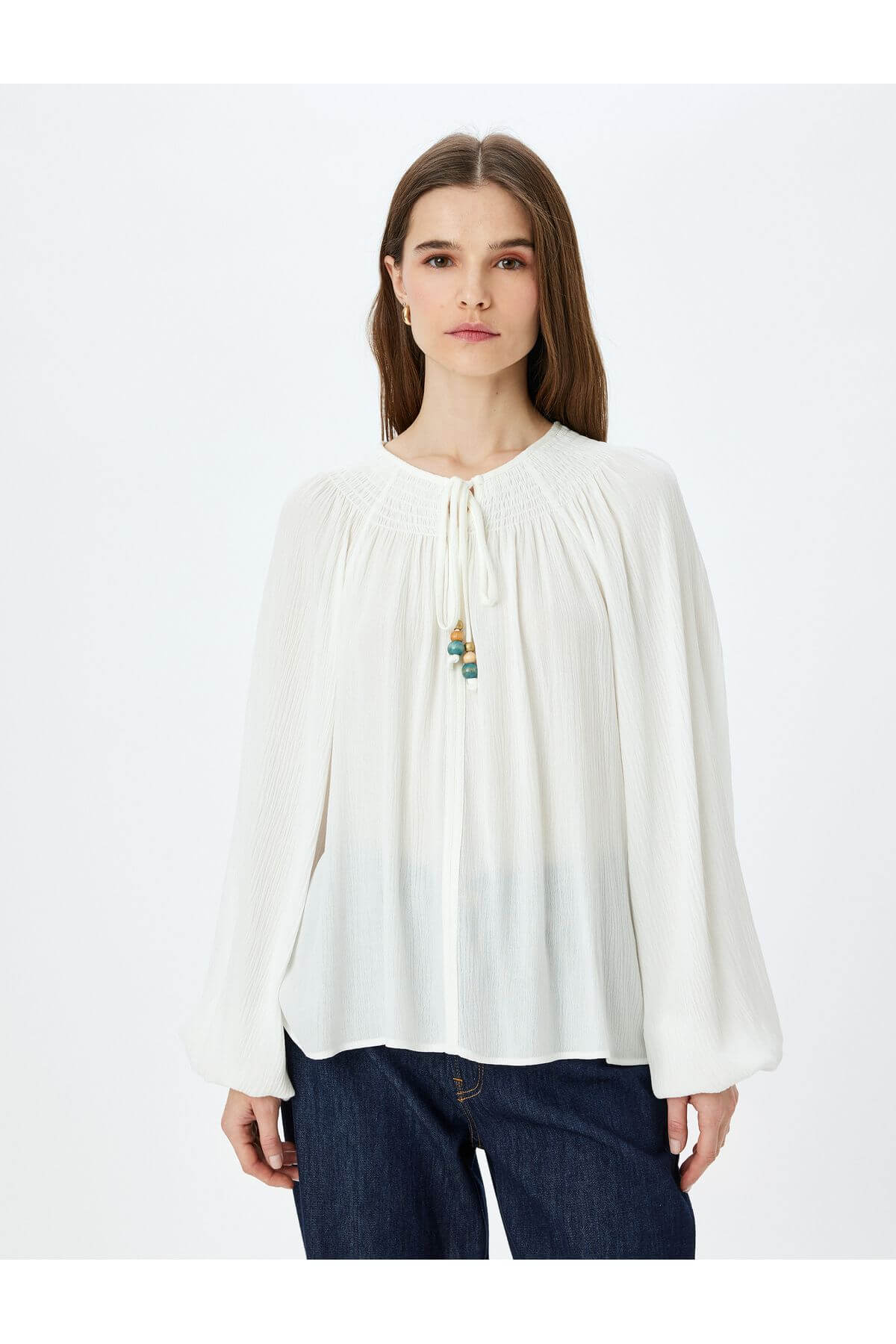 • Ürün Özellikleri Silüet: Bol Kol Boyu: Uzun Kol Kol Tipi: Balon Kol Kumaş: %100 Viskoz Kullanım Alanı: Günlük Giyim, Özel Günler Koton şıklığı ve kalitesini günlük stilinize taşıyan bluz, her kombine kolayca uyum sağlıyor.