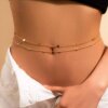 Çift Zincirli Kararmaz Altın Kaplama Bel Zinciri Ve Göbek Takısı Seti