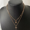 Yıldız ve Haçlı Rodyum Kaplama İkili Kolye